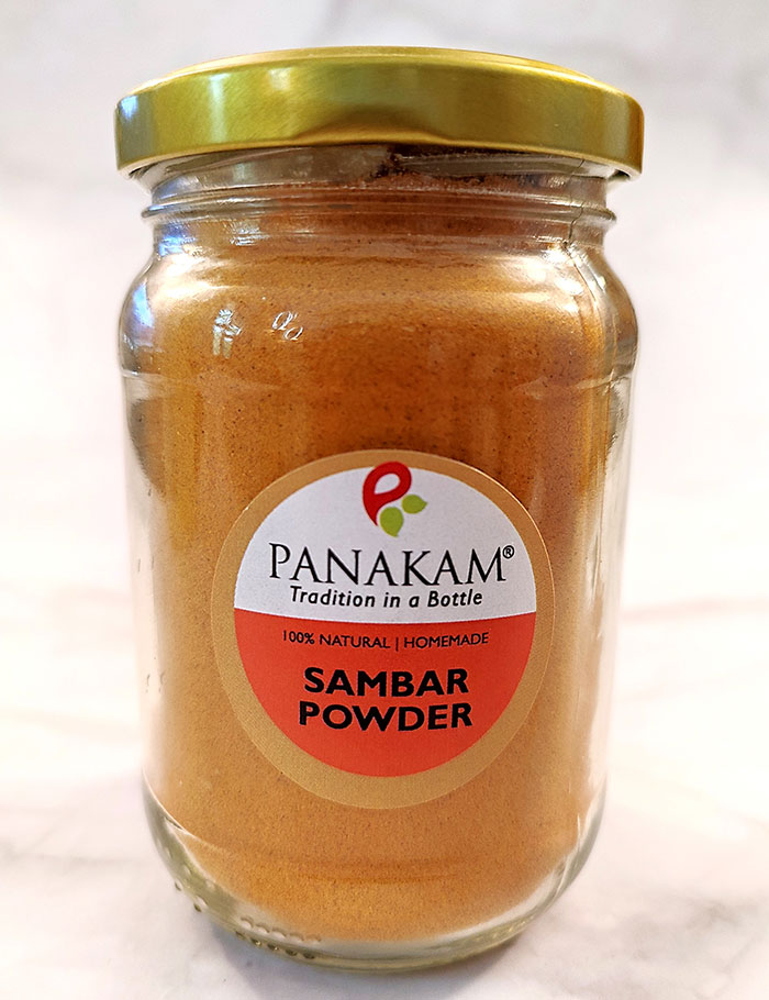 Use the required quantity of Sambar Powder to make the most flavourful traditional South Indian Sambar. Sambar great accompaniment to Idli, Dosa, Idiyappam, Pongal and other South Indian Tiffins and with Hot steamed rice. Sambar Rice is a great comfort food for many South Indians. Sambar Rice can be paired with some homemade/handmade fried Crispies/Vadams from Panakam-Tradition in a Bottle’s offerings.